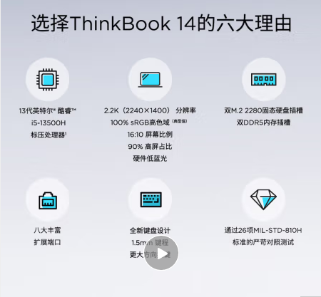 聯(lián)想/LENOVO ThinkBook 14 便攜式計(jì)算機(jī) 英特爾酷睿i5 14英寸輕薄辦公筆記本電腦13代i5-13500H 16G 1T 2.2K 萊茵認(rèn)證